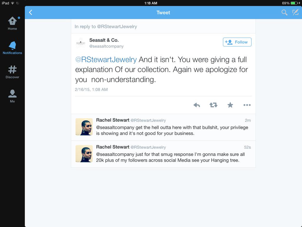Why do you feel the response of Seasalt & Co. caused such conflict and anger from not only the Black but the creative communities as well?