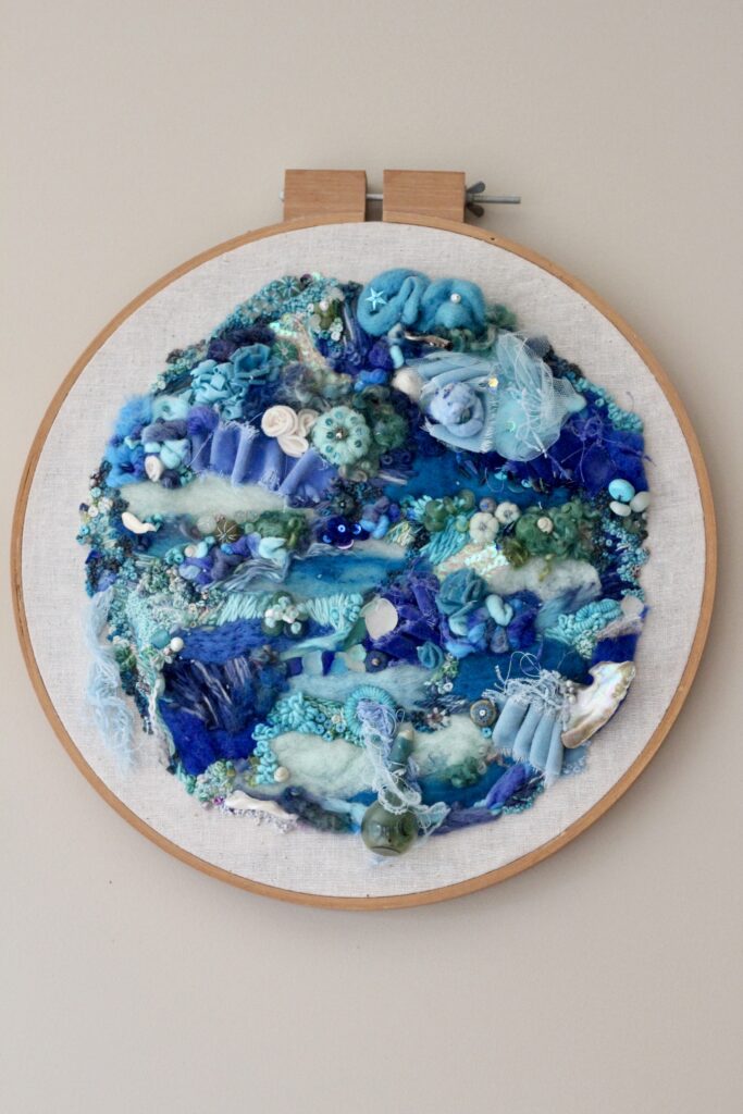 🧵Stitching The Blues🪡 Mixed media experiments — stitched and felted hand dyed wool, remnants of my Nana Ana Brom’s hand dyed silks (and her thread scissors), beads & a tiny message in a bottle sealed with beeswax. … [Read more...] about Handwork – The Blues