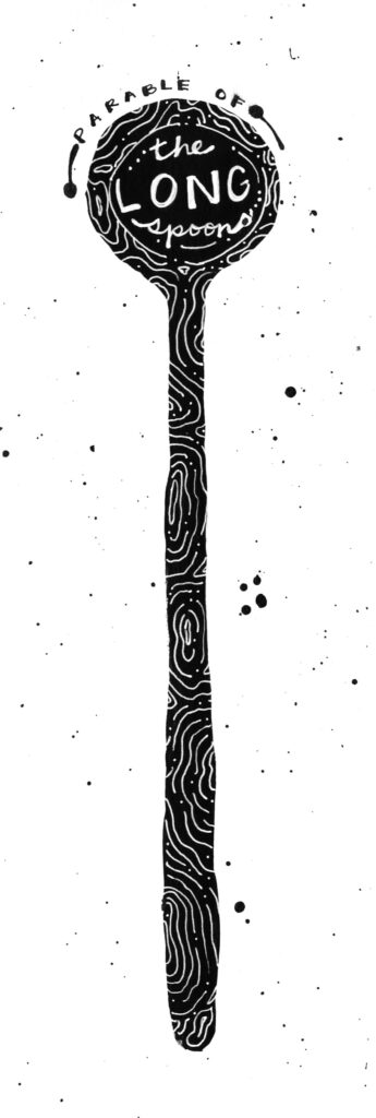 Imagine that hell is a dinner party. There is a long table in a grand hall filled with delicious food but the guests are miserable. No one is able to eat because they are forced to use long spoons that cannot reach their mouths. They have so much but they are still starving and suffering. Imagine that heaven it’s a dinner party. There is a long table winding … [Read more...] about Allegory of the Long Spoons
